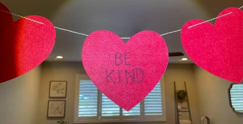 A fun and simple arts and craft activity to do with kids of all ages, is making a heart banner with ways to be kind.